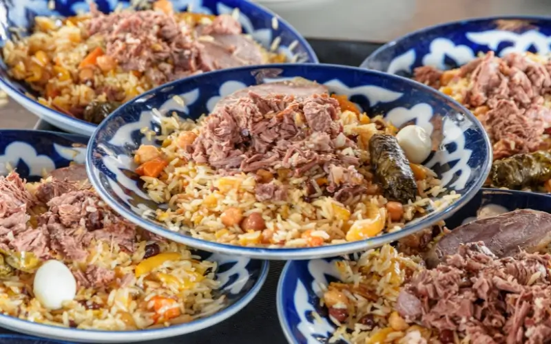 Uzbekistan’s food is famous for its rich, hearty dishes, with the national dish being plov. So, trying plov is one of the must-do things in Uzbekistan. And the best place to eat plov is the plov center in Tashkent, the capital of the country.
