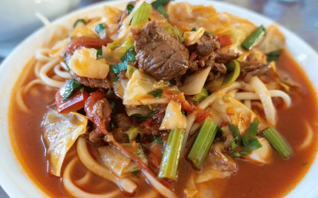 This dish feels a bit like Central Asian comfort pasta, which helps if you travel with kids or picky eaters. You can ask for more vegetables and less meat if you want something lighter without giving up flavor.