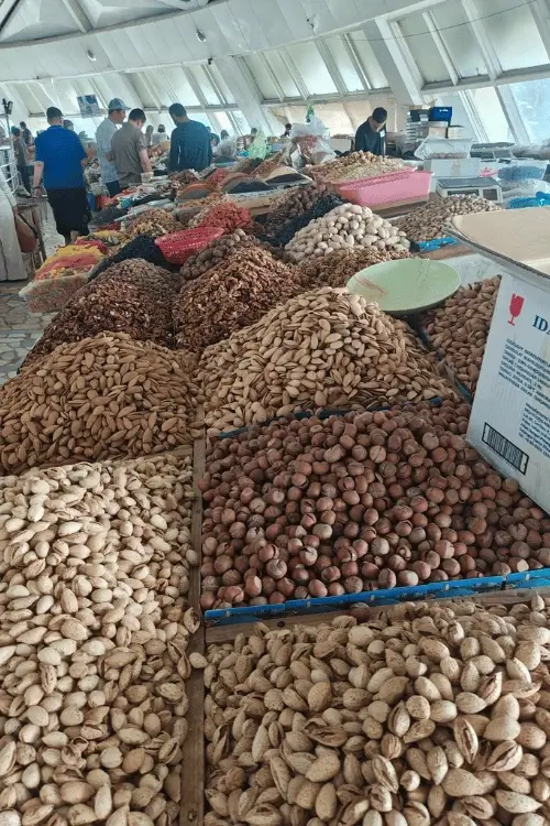 Bazaars might be the most fun way to explore Uzbekistan street food without spending much money. You can sample dried fruit and savory pastries.