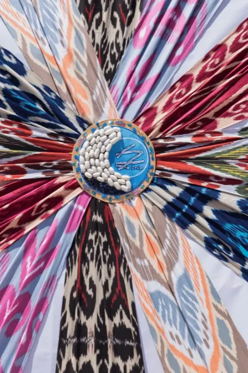 A table runner is an easy and useful way to add Uzbek patterns to your daily life. You can find runners with suzani embroidery, ikat weaving, or mixed crafts with tassels and trims showing local designs.